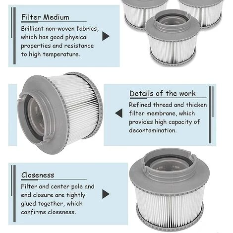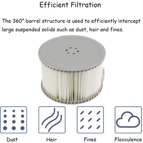 Facile nettoyer et bactries difficiles reproduire : le filtre de piscine de massage est fabriqu en papier Dacron facile nettoyer et rsistant, la salet peut tre lave facilement. Et ce filtre est difficile produire des bactries, de sorte que la pollution secondaire a t vite. La cartouche filtrante de rechange MSpa limine la salet et les germes et garantit une eau propre et frache. .