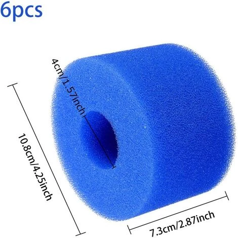 Contenu : 6 filtres en mousse pour piscine. Dimensions : 10,8 x 7,3 cm.