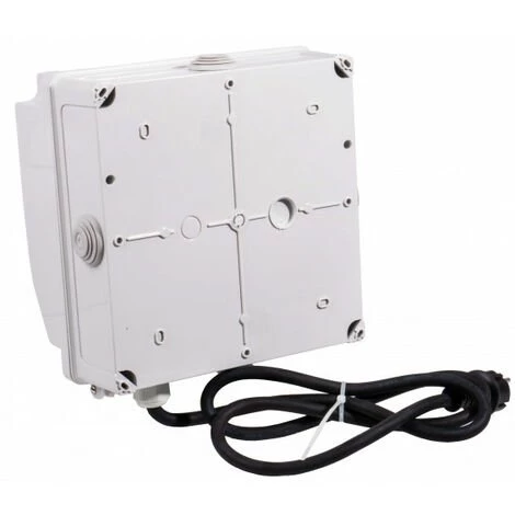 | Composition | – 1 interrupteur différentiel 40A 30mA type AC – 1 horloge électronique programmable (avec fonction marche forcée, AUTO, OFF) – 3 disjoncteurs 1P+N 16A protégeant chaque prise – 3 prises de courant 230V~, 2P+T, IP54, 16A avec fermeture à clapet – 3 borniers de connexion (phase, neutre et terre) – 1 câble H07RN-F 3G2.5mm² avec fiche 2P+T |