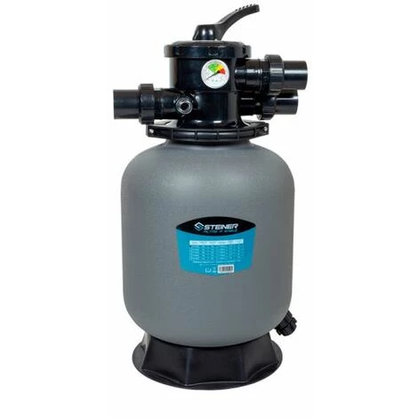 Le filtre à sable Ø350mm Steiner d’un débit de 4.5m³/h avec vanne Top 6 voies est un élément primordial et efficace pour filtrer et purifier l’eau de votre piscine. Il s’agit d’une option économique et nécessitant peu d’entretien pour garder l’eau de votre piscine toujours plus limpide. Disposant d’une surface de filtration de 0.10 m², il restera parfaitement adapté aux piscines ayant un volume d’eau jusqu’à 18m³. Grâce à ses entrées et sorties de vanne en 1.5’’ avec raccords Ø50mm à coller, il pourra s’intégrer facilement à votre installation. Sa cuve anticorrosion en polyéthylène haute densité soufflé résistera parfaitement aux produits de traitement et aux intempéries. Équipé d’un manomètre permettant un contrôle visuel permanent du niveau d’encrassement, d’une base injectée pour plus de stabilité et d’un témoin de turbidité pour une parfaite gestion des phases de lavage. Compatible eau salée et eau chlorée.