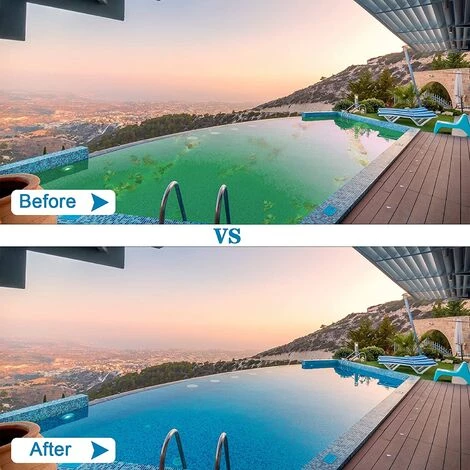 Puissant : Filtration rapide, forte capacité d’adsorption, longue durée de vie et utilisation facile, peut capturer de minuscules matières en suspension qui ne sont pas faciles à séparer et à enlever, et rendre la piscine plus propre.