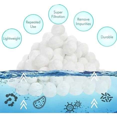 Fabriqué en polyéthylène 100 % recyclable. Capacité d’adsorption élevée, améliorant efficacement la qualité de l’eau. La boule filtrante peut capturer des particules plus petites que le sable filtrant ordinaire. Applicable à presque tous les systèmes de filtre à sable. Un paquet (0,7 kg) peut remplacer environ 25 kg de sable filtrant. Une nouvelle génération de matériaux filtrants.