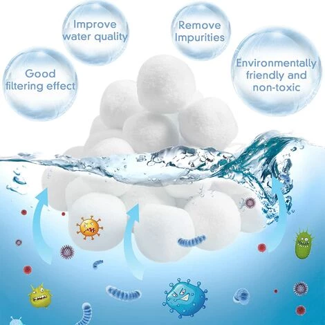 【Large application】: Filterballs est utilisé universellement dans divers systèmes de filtre à sable, ne bloque pas les systèmes de filtre à sable et convient également à l’eau salée. Peut filtrer non seulement pour les piscines, mais aussi pour les aquariums, les étangs, etc. L’application de la bille filtrante vous donne l’effet de qualité de l’eau propre et claire!