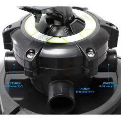 En vertu du sable comme milieu filtrant, ce filtre à sable de piscine est efficace pour filtrer et purifier l’eau de votre piscine. Il s’agit d’une option très économique et nécessitant peu d’entretien pour garder l’eau de votre piscine intacte. Fabriqué en polyéthylène haute densité, le filtre à sable est hautement durable. Ce filtre est conçu pour atteindre un débit de 7 m³/h. La pression de service maximale est de 3,5 bar. Pour démarrer l’opération, 19 kg de sable filtrant (non inclus) sont nécessaires. Le filtre est équipé d’une vanne multivoie à 4 positions : filtre (pour filtrer l’eau), contre-lavage (pour nettoyer le milieu filtrant), rinçage (pour rincer le système de filtration) et hiver (pour hiver). Remarque : Il peut être connecté avec des tuyaux de 32 mm et 38 mm de diamètre.