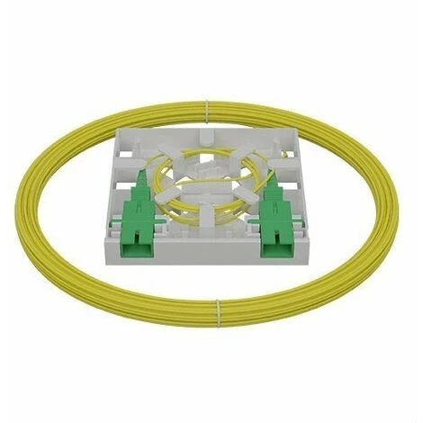 Pack rosace F/O + tuyau bifibre connecté à une extrémité 20m ICT-2. Pack de prises de fibre optique ICT, avec deux traversées SC/APC plus un cordon de brassage bifibre avec deux connecteurs SC/APC montés à une extrémité et connectés à la prise.