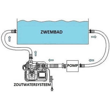 Ce système d’eau salée convient aux piscines jusqu’à 17 413 litres d’eau et fournit une désinfection naturelle et une eau douce. Le système doit être relié à une pompe de filtration d’une capacité minimale de 1 250 litres par heure. Si d’autres accessoires de piscine tels que des tapis solaires sont utilisés, une pompe plus lourde doit être utilisée. Le système d’eau salée convertit le sel de la piscine en chlore naturel, tuant efficacement les bactéries, les champignons et les algues. Le sel ne doit être ajouté qu’au début de la saison pour les plaisirs de l’été. Le sel se dissout et est pompé dans le système d’eau salée par la pompe de la piscine après la cellule en titane. Ici, le sel dissous est converti en chlore. Ensuite, un processus se produit qui libère de puissants oxydants, qui tuent les algues, les bactéries et les champignons qui se trouvent dans l’eau. À la fin, tout reprend sa forme d’origine, de sorte que le sel peut être utilisé à l’infini. En utilisant le système d’eau salée, vous avez besoin de jusqu’à 60 % de chlore en moins dans la piscine. Cela signifie que vous êtes moins gêné par les yeux rouges, la décoloration de vos vêtements (de natation) et l’odeur de chlore. Le système d’eau salée est facile à installer entre la pompe de filtration et la piscine. Grâce à l’adaptateur fourni, le système s’adapte sur n’importe quelle piscine avec un raccordement Ø 32 mm. Le raccordement à une piscine avec un raccordement Ø 38 mm n’est malheureusement pas possible.